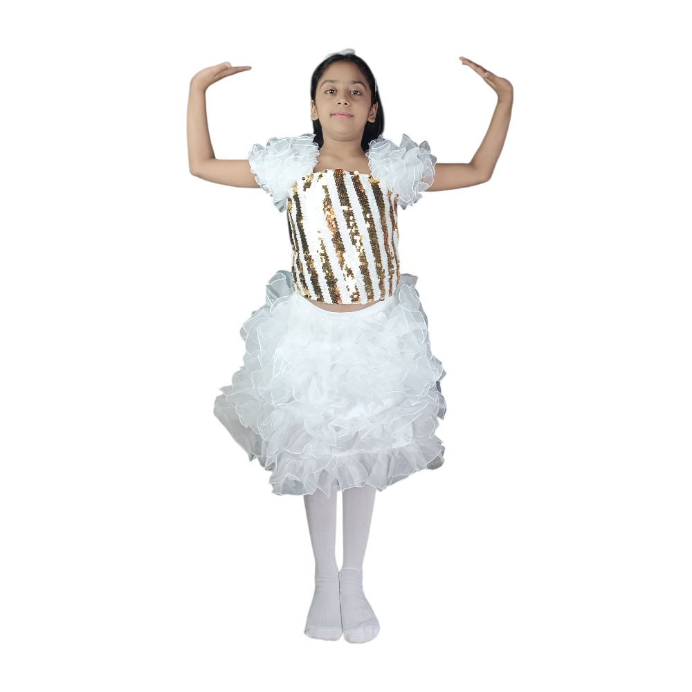 White & Golden Western Fancy Dress for School Girls